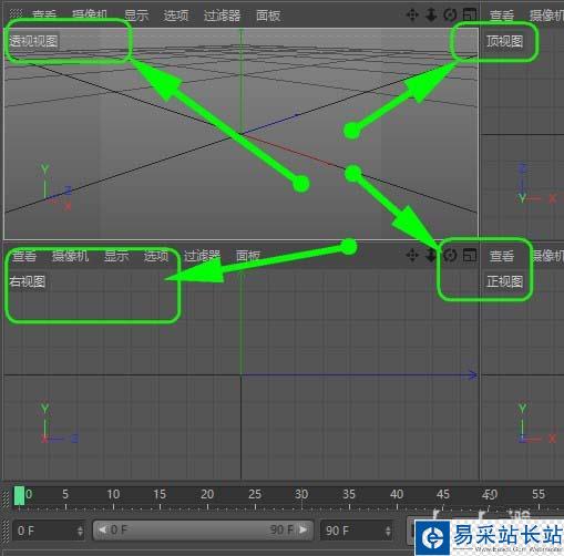 2、想要調出c4d的其他視圖可以按一下鼠標中間的滾輪鍵。