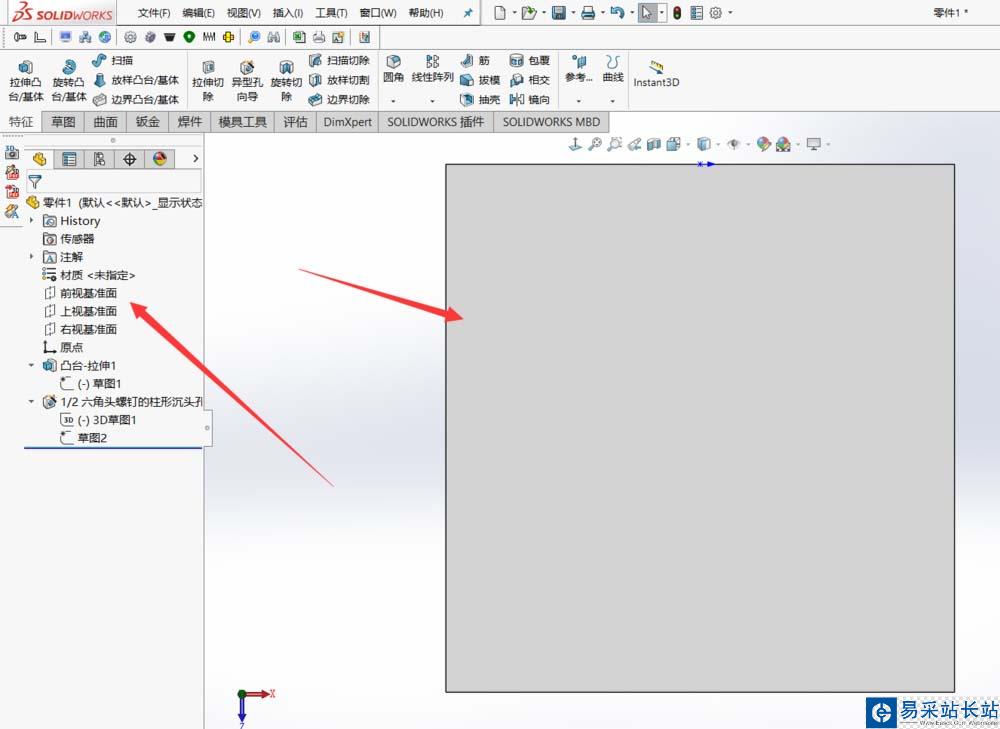 1、我們先要選擇一個基準面,可以是三視圖的其中一個,或者如果在零件表面上畫橢圓,就選擇額零件的表面。