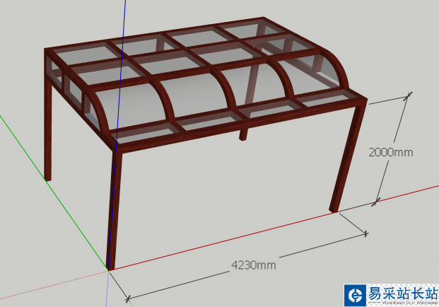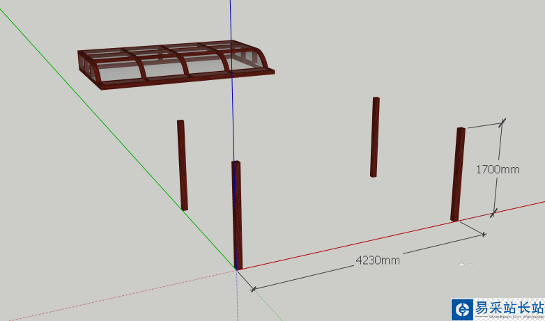 2、我們的目的是要直接得到我們想要修改四根立柱的尺寸。其他不變,我們先把陽光房的房頂移開,移開后如圖。