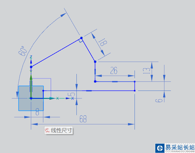 2、先用輪廓線,繪出大概輪廓;再用標注及約束來確定截面線。如圖所示。