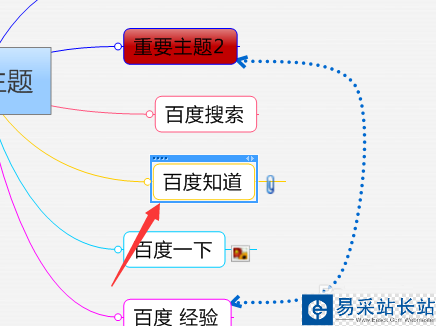1、首先,在打開的思維導圖當中,進行選中一個含有附件子主題。