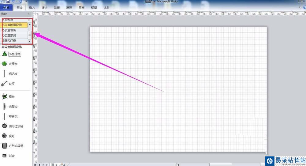 4、如果辦公室有植物、臺燈、垃圾桶等附屬設施,也可以添加至繪圖區域。