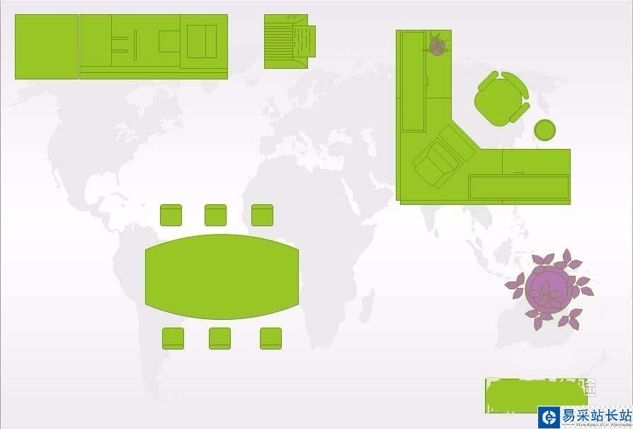 7、為了使布局圖看起來更美觀,我們可以修改背景色、形狀顯示色等。最后一張簡易的辦公室布局圖繪制完成。
