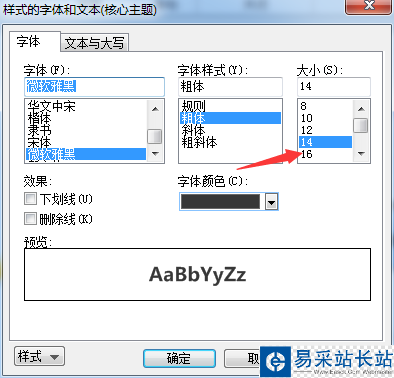 4、就會彈出了一個字體和文本的窗口界面當中,進行再大小中進行修改大小。