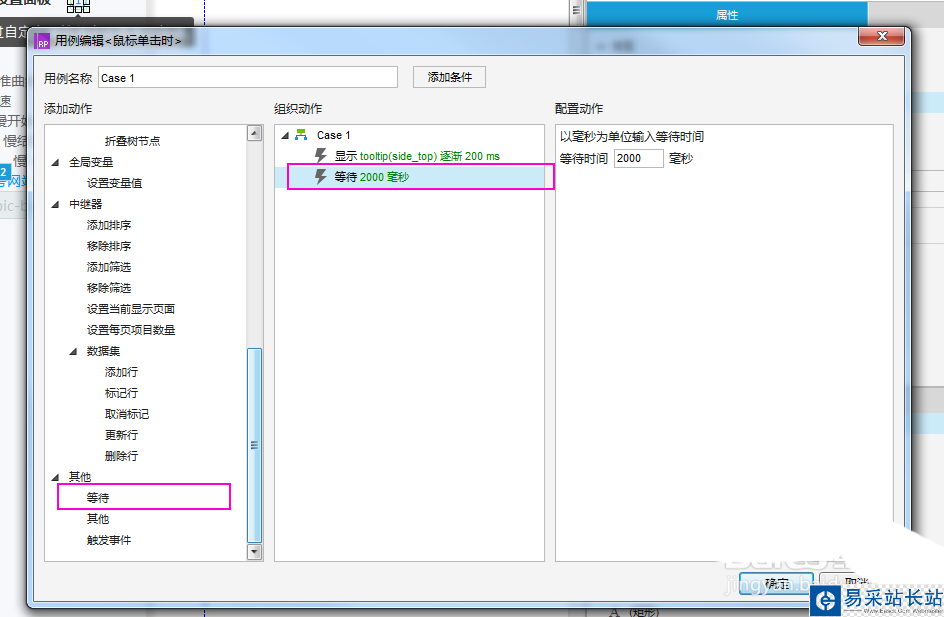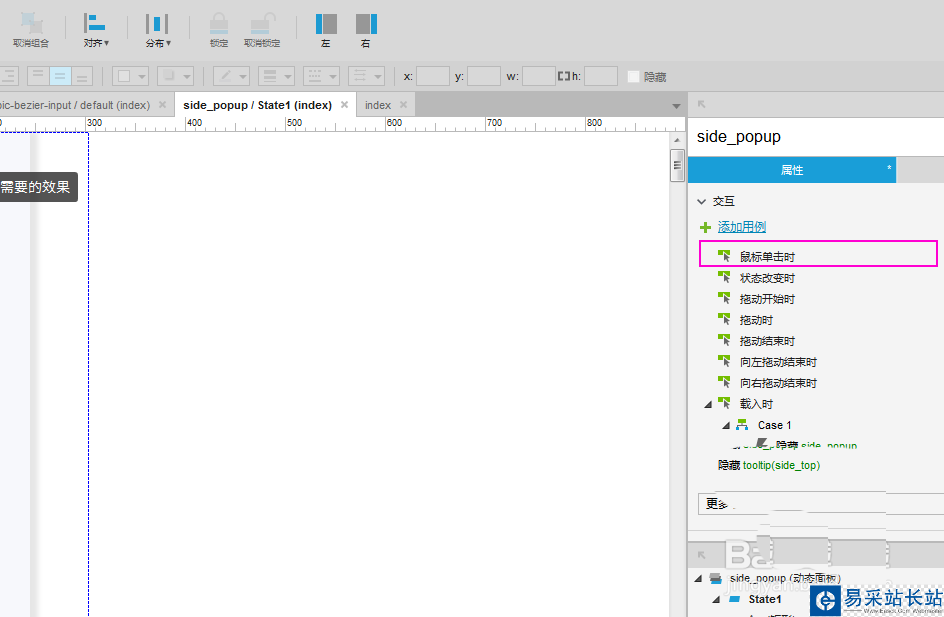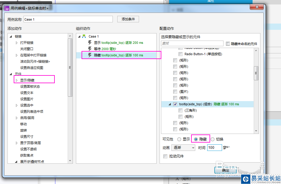 3、在“載入時(shí)”用例編輯中,隱藏tooltip,上面的事件無(wú)需理會(huì),是另外一個(gè)交互事件
