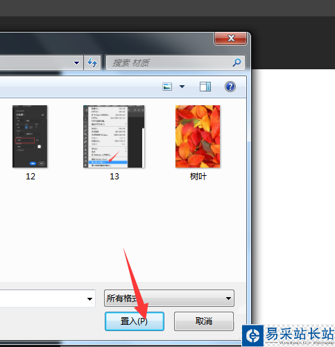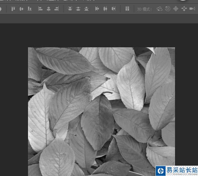3、新建后選擇置入對象,把剛才我們保存的樹葉圖片選擇添加進來,樹葉變成灰度圖片,效果如圖所示: