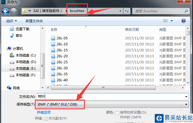 4、這就是我們制作的紋理圖片,另存到SAI安裝文件里的brushtex里,里面就是SAI里的各種紋理文件,格式是BMP,這里命名為樹葉。