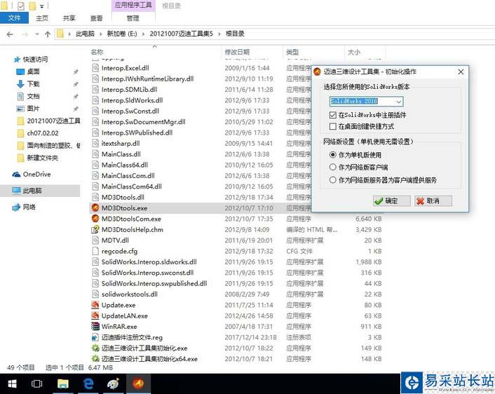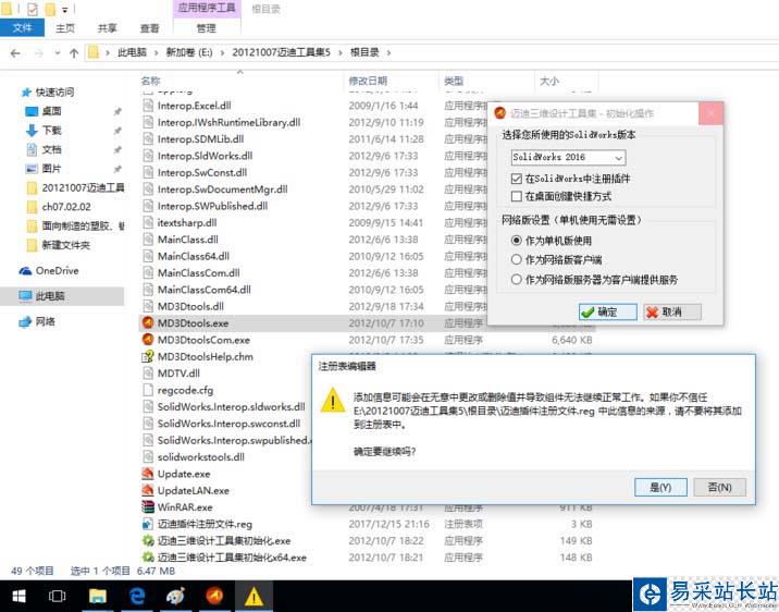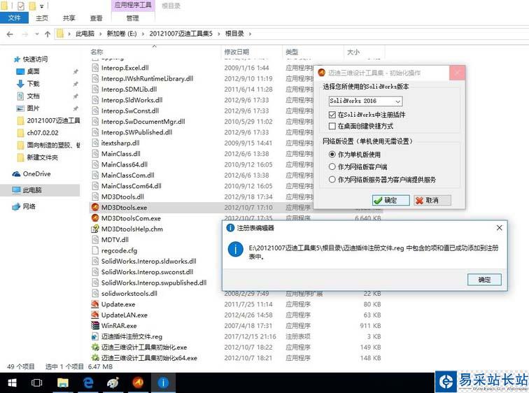 3、選擇正在使用的SolidWorks版本,點選“在SolidWorks中注冊插件”,選擇“作為單機版使用”,單擊確定。