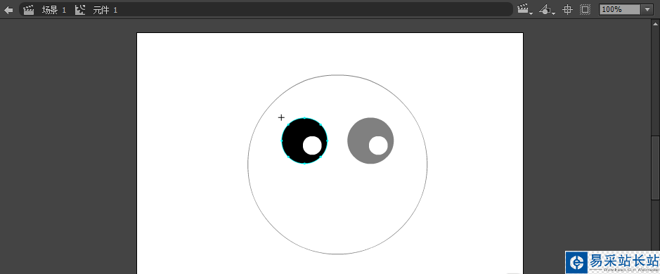 4、選中眼睛喝眼珠,按F8轉換為原件,并按住Shift+Alt鍵盤復制出一個眼睛。