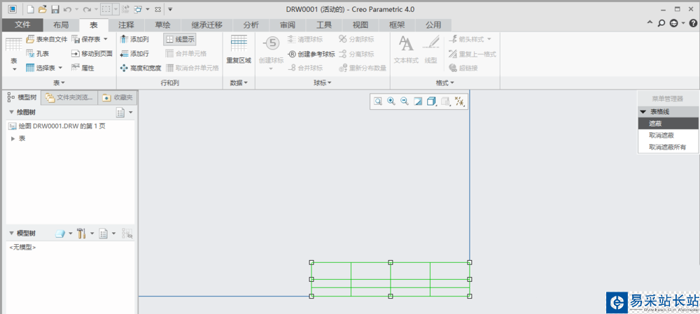 1、creo4.0工程圖中隱藏表格中的線框.