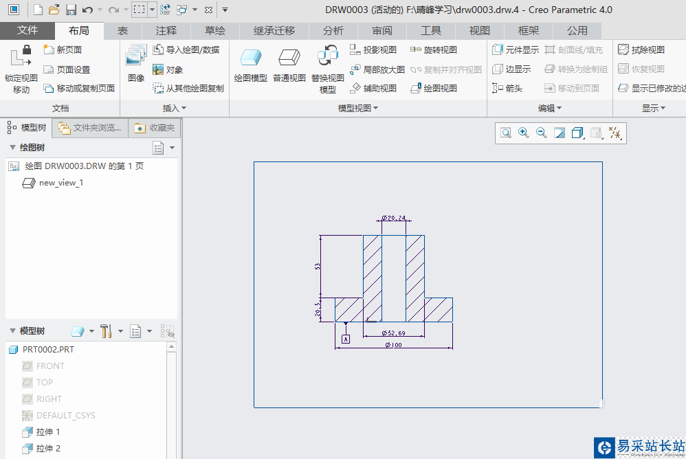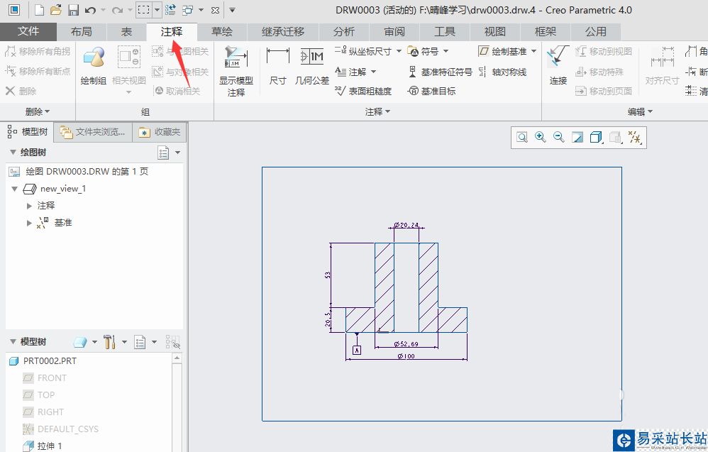 1、打開creo4.0軟件,打開一個工程圖文件。