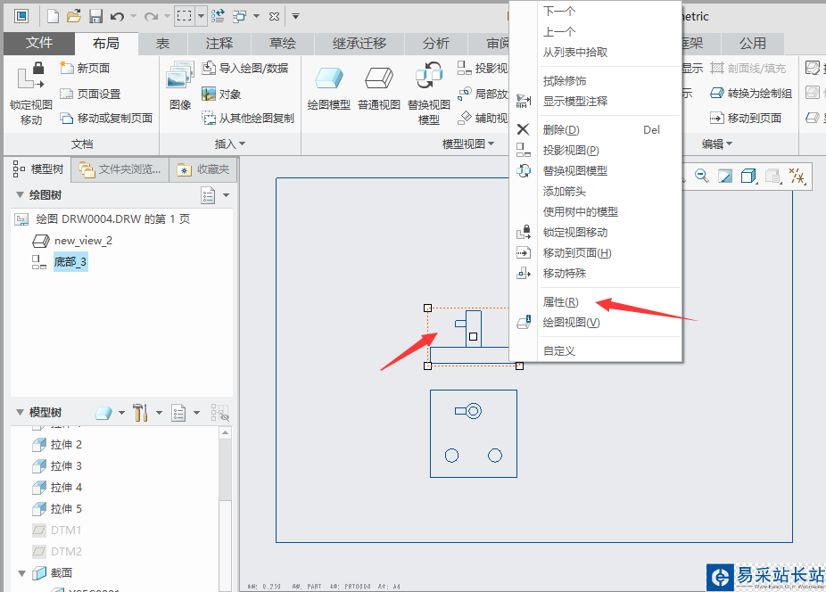 2、單擊主視圖,主視圖被選中,然后右擊。在彈出的快捷選項,選擇“屬性”。