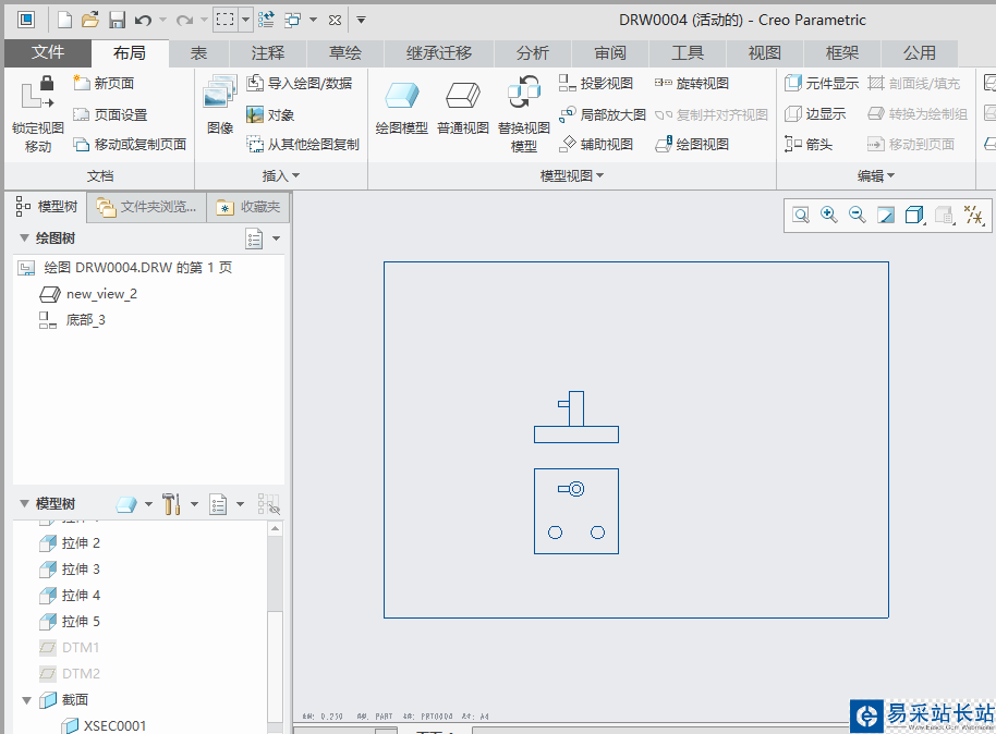 1、打開creo4.0軟件,創建如下如視圖。(零件模型中創建兩個截面XSEC0001、XSEC0002,零件模型這里不具體說明了)