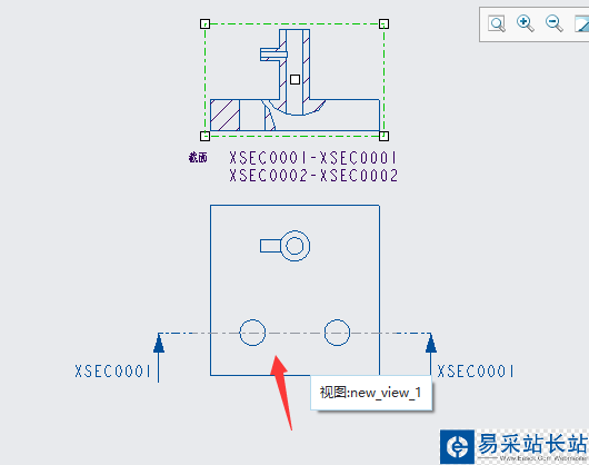 8、單擊俯視圖,此時就添加了橫截面”XSEC0001“箭頭。