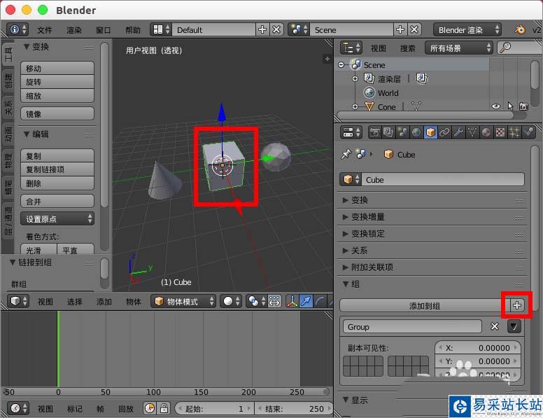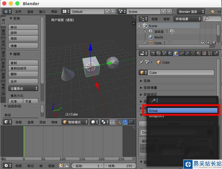 4、然后點擊 添加到組選擇Group把立方體模型添加進入。
