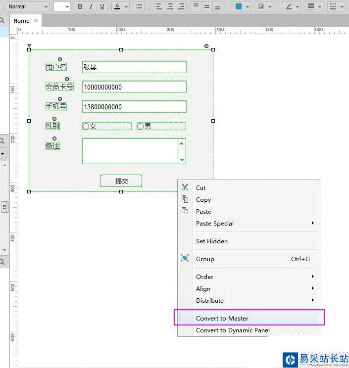 2、選中需要轉成母版的所有元件,【右鍵】-【轉成母版】