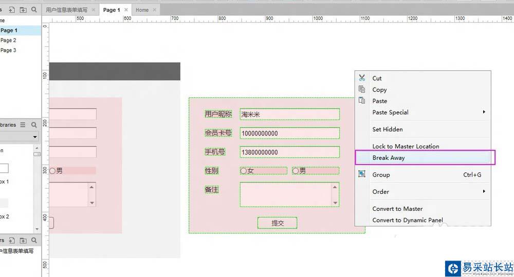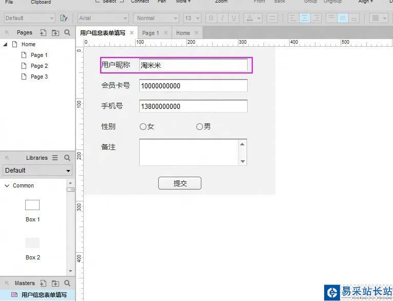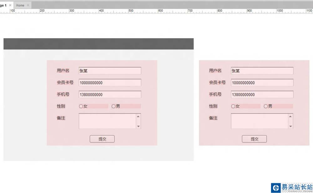 1、母版最佳使用場景是反復使用的組件,當然,還有一種情況是當使用Axure繪制流程圖時,如果涉及的頁面過多,可以按功能模塊生成母版,方便編輯和查看,這個不屬于這次的討論范圍,這里只說反復使用的母版,比如圖中的表單,我在多個頁面中都要使用到,那就非常適合使用母版的功能了
