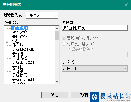 2、新建"墻"明細(xì)表,點(diǎn)擊確定