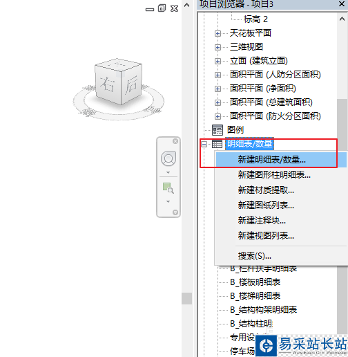 1、通過(guò)項(xiàng)目瀏覽器,下明細(xì)表/數(shù)量,右鍵新建明細(xì)表