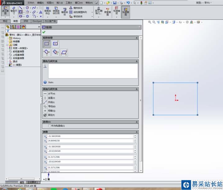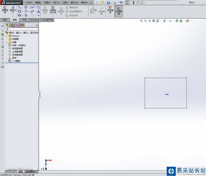 3、完成并退出草圖之后,記得一定要是矩形顏色變成灰暗的,才算是徹底退出了草圖狀態。