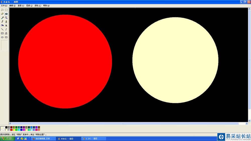 7、把背景填充回白色,把剛剛畫出的任意顏色圓用選擇工具選擇拖到紅圓內(nèi),也填充白色。(我的任意顏色圓不合適,慢慢調(diào)整就好)。