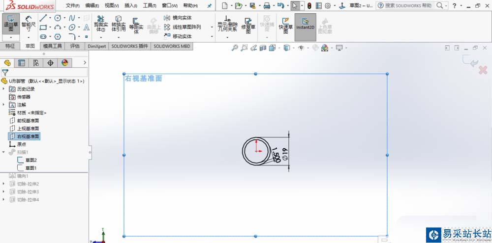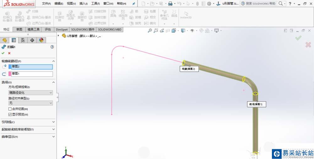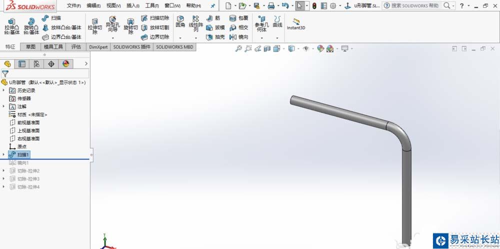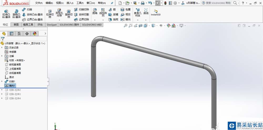 solidworks2017中想要畫U型空心管腳零件,該怎么建模這個零件模型恩?下面我們就來看看詳細的教程。