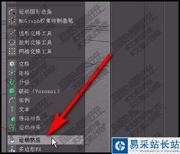 2、鼠標移到菜單欄運動圖形這里,點擊一下,在彈出的下拉列表中選擇:運動擠壓