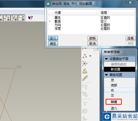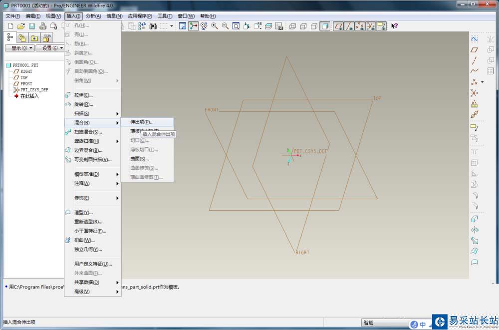2、依次點擊“插入/混合/伸出項”,繪制基礎圖形