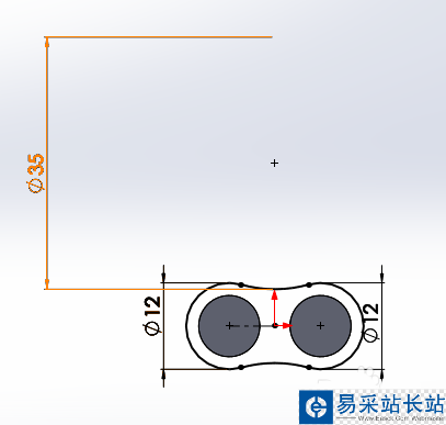 2、在一對滾子所在平面建立草圖,繪制出鏈板的草圖,如圖所示。然后拉伸得出滾子一側(cè)鏈板。