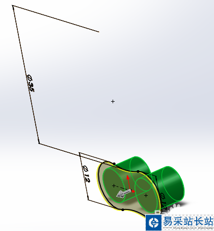 1、直接進(jìn)入正題!首先在草圖上畫出兩個大小相同的圓,給出必要的尺寸。拉伸得到滾子。