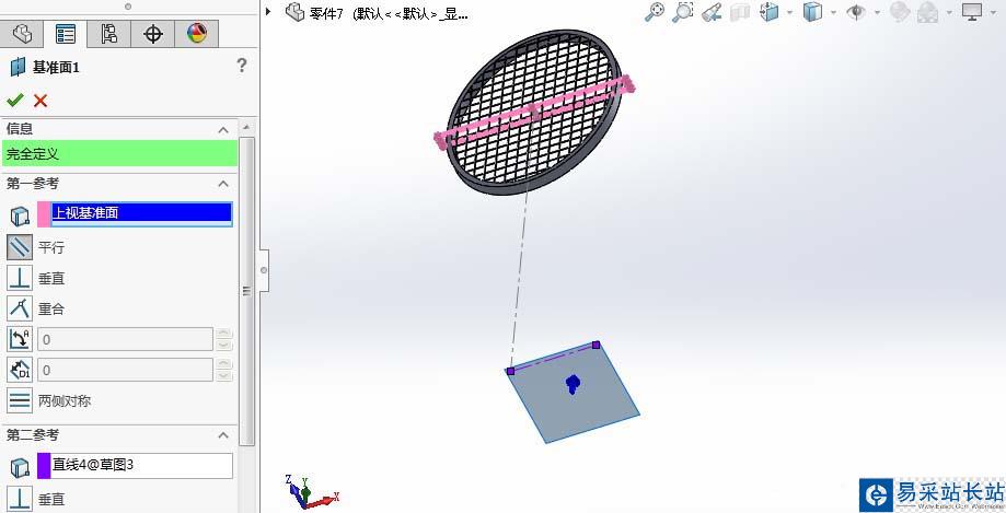 6、插入新的基準(zhǔn)面,根據(jù)上面草圖的尺寸位置確定方位。