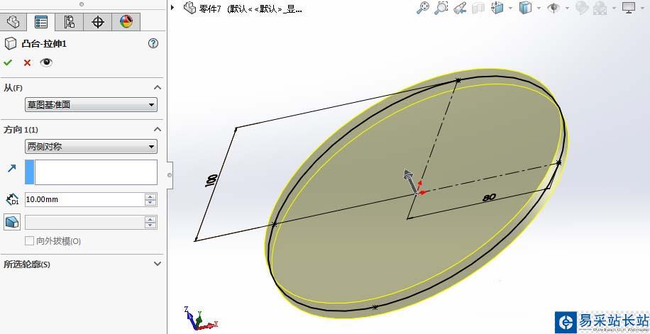2、使用兩邊對稱的拉伸凸臺命令,得到羽毛球框架的雛形。