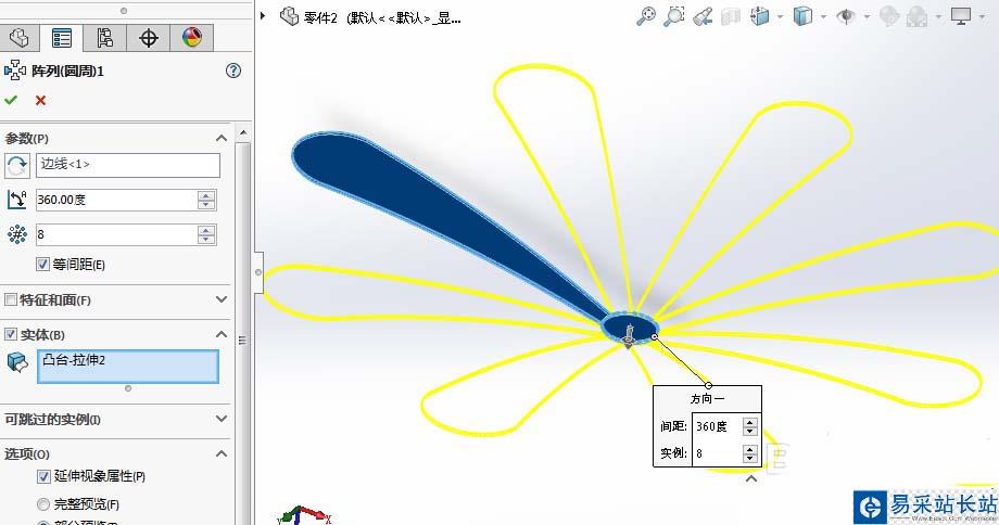 6、使用實體圓周陣列命令,得到其余的花瓣模型。