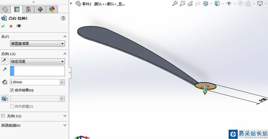 10、使用拉伸凸臺命令,花梗建模成功。花朵的基本模型完成了。