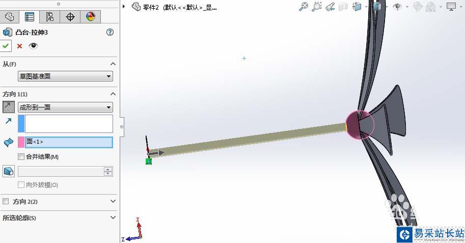 5、使用拉伸凸臺的命令,對花朵的中心部分建模。
