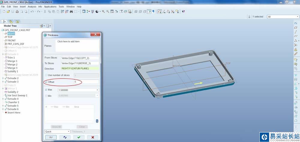 5、現(xiàn)在需要切面的偏移距離,和最大肉厚