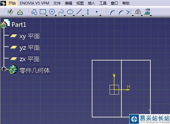 1、打開CATIA三維制圖軟件,點擊新建進入建模part模塊,依據鏈接進入草圖模式