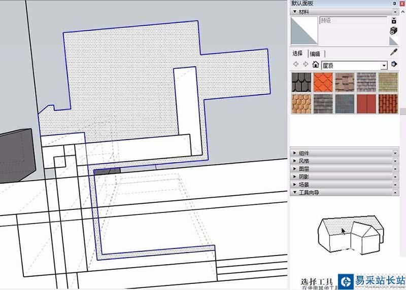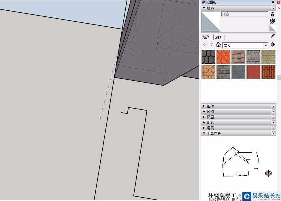 3、如果是比較特殊的外飾面,我們最好使用鉛筆工具進行勾勒,su只有閉合線條才會形成面,我們需要注意閉合線條。