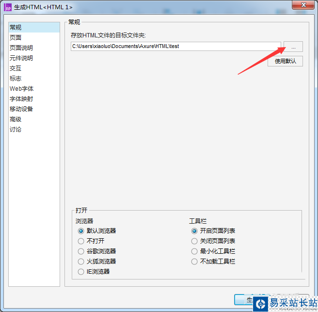 4、就會彈出了一個生成html窗口的,在常規的選項,選中瀏覽的按鈕。