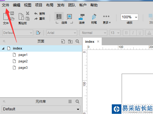 2、點擊了的Axure8的菜單中的文件的菜單。