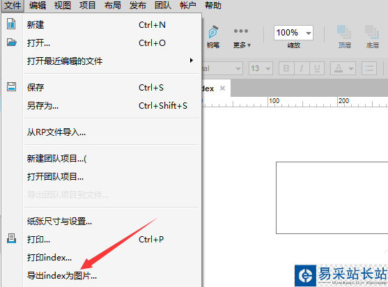 3、點擊了的文件的菜單之后,彈出了下拉菜單選中為導出index為圖片的選項。
