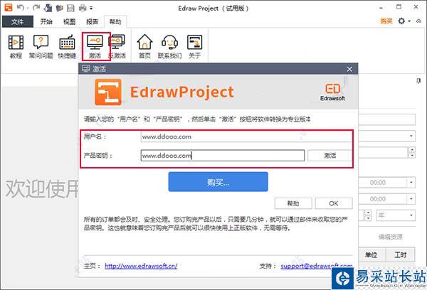 7、如需注冊,點(diǎn)擊幫助菜單--找到激活--輸入你購買的用戶名和產(chǎn)品密鑰即可成功激活軟件;