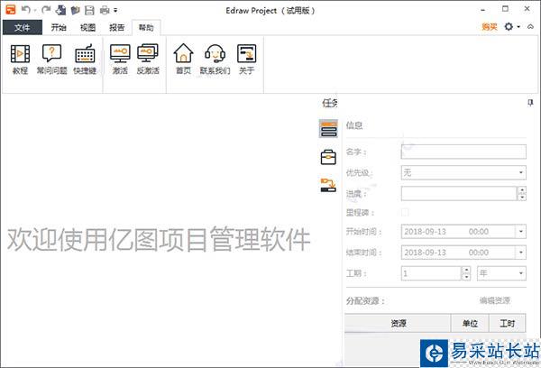 6、打開億圖項目管理軟件,其界面如下,可以看到是試用版本;