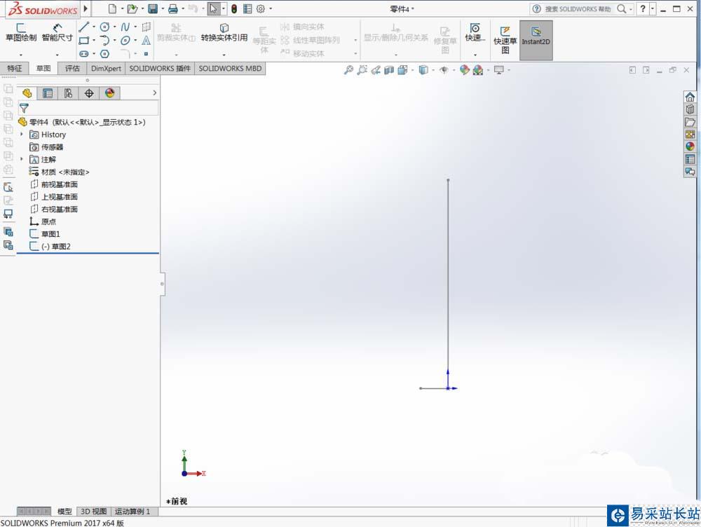 1、首先打開SW軟件,創建新零件,在任意一個參考面創建一平面草圖,沿原點畫一線段,長度為你想畫的螺旋半徑,然后退出草圖;