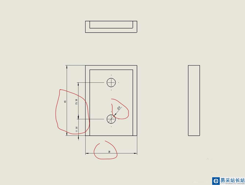5、這時之前標注的尺寸就變的很醒目了,如圖。