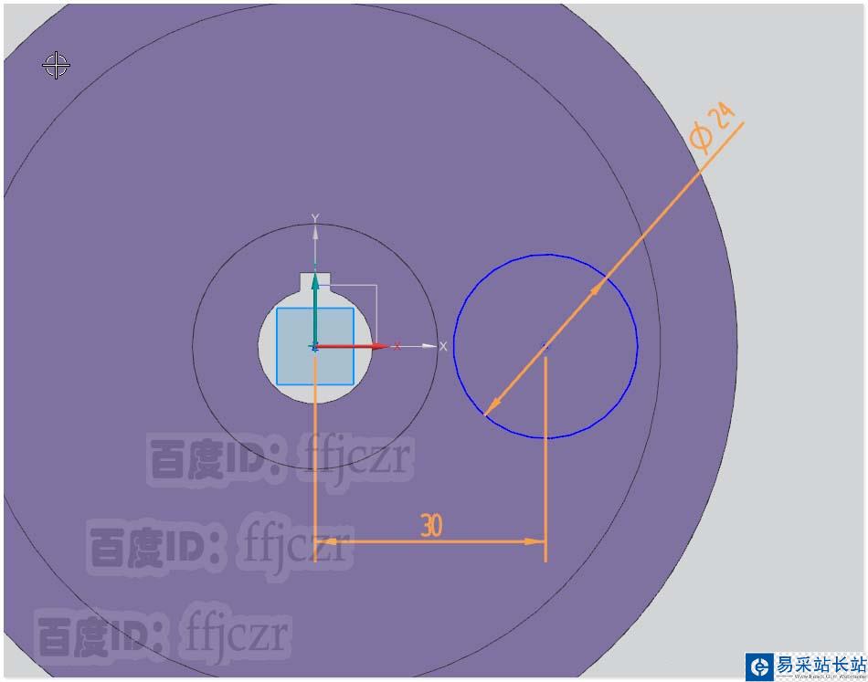 5、再次選用拉伸命令,以XY面為草繪平面;草繪中在X軸上繪一直徑為24的圓,圓心距離Y軸30.