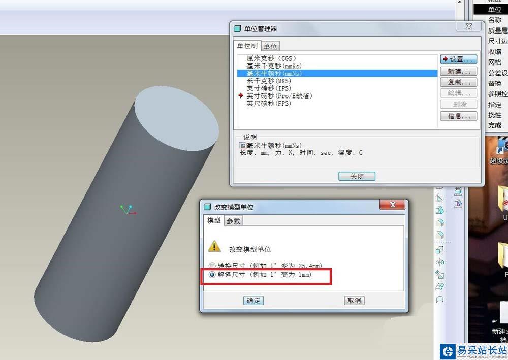 7、選擇--毫米牛頓秒MMNS--設置---。這時會彈出一個對話框,為了說明效果,我們選 上--轉換尺寸--確定試一下,再關閉上一層對話框