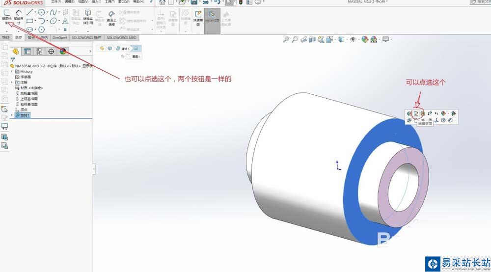 1、打開上一次畫的旋轉體,選擇一端平面為草圖平面,如圖