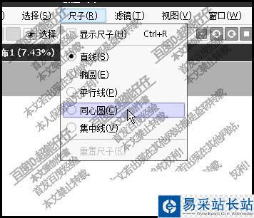 2、點擊尺子菜單,下面彈出菜單列表,看到有:同心圓