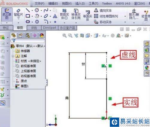 2、上面的草圖畫好之后,在新建一個草圖,如下圖所示,記得標好尺寸,根據實際需要來。
